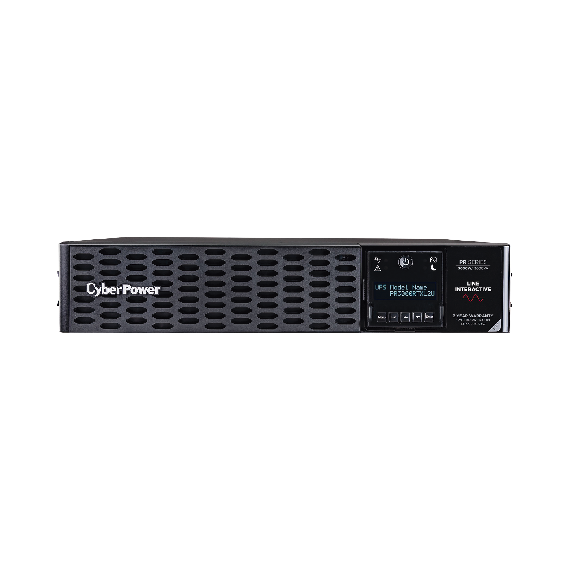 CyberPower PR3000RTXL2U con diseño de montaje en rack, garantiza protección de respaldo de energía para sistemas de teatro en casa, dispositivos multimedia, equipos de TI, computadoras, estaciones de trabajo, NAS / dispositivos de almacenamiento, dispositivos de telecomunicaciones, dispositivos de red y sistemas de video vigilancia. El UPS adopta la topología de línea interactiva con regulación automática de voltaje (AVR) y ofrece salida de onda senoidal estabilizada para garantizar una alta calidad de potencia.