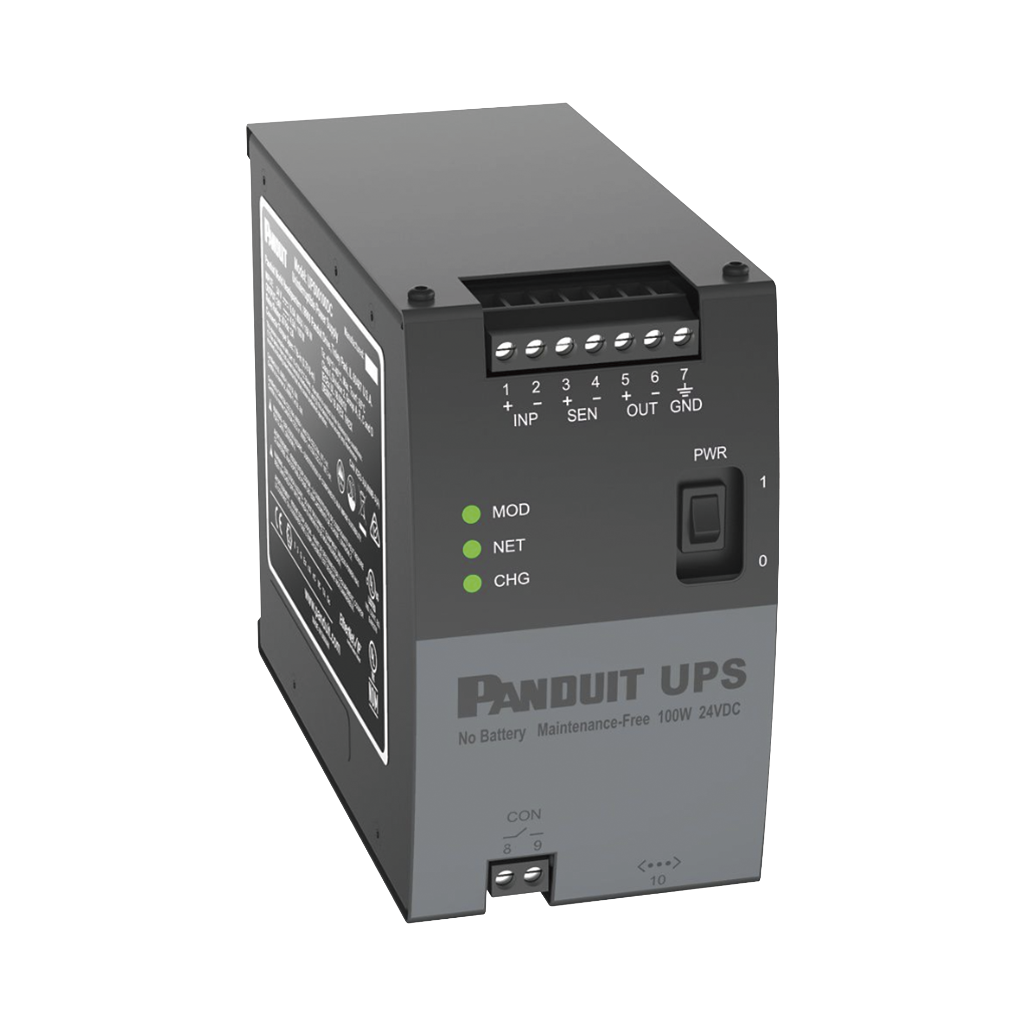 La fuente de alimentación ininterrumpida (UPS) no requiere mantenimiento y no requiere batería, es de 100 W y 24 Vcc. La tecnología de ultracondensadores reduce el riesgo de tiempo de inactividad debido a fallas de la batería y ahorra gastos en mantenimiento y el reemplazo de la batería. El UPS elimina el costo de eliminación de baterías de desecho HazMat y la acumulación de gas hidrógeno dentro del gabinete.