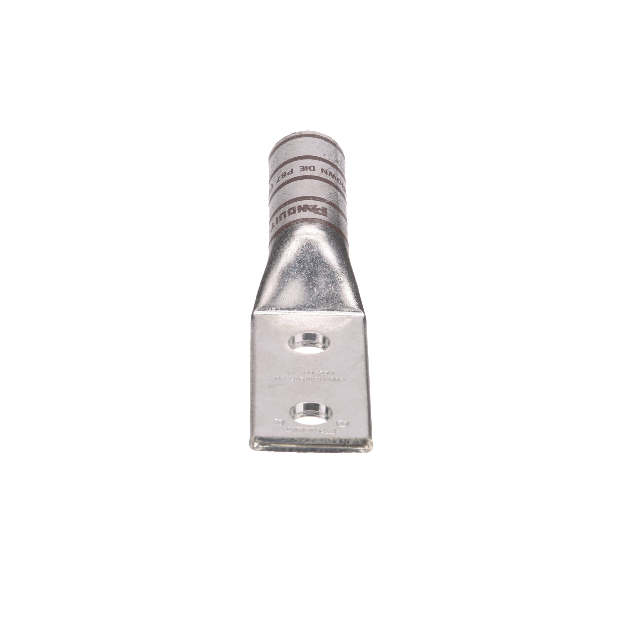 Talón de conector de compresión de cobre estañado LCC500-12-6, dos orificios, tambor largo y tambores codificados por color marcados con números de índice de dado de Panduit y de un competidor especificado para la adecuada selección de dados. El tambor largo maximiza la cantidad de prensas y ofrece alta calidad de rendimiento y resistencia de extracción del cable. El tambor cerrado evita que ingrese material corrosivo en entornos hostiles. Incluido en el Listado UL y certificado por CSA.
